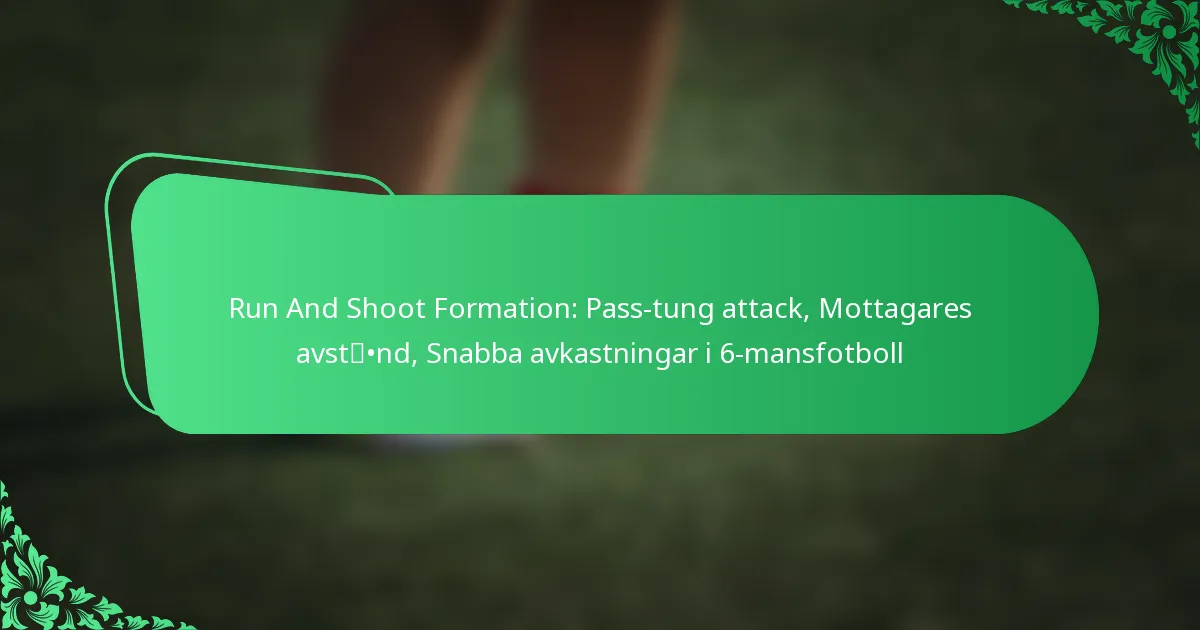 Run and Shoot-formationen i 6-mannafotboll är en pass-tung offensiv strategi som betonar snabba avkastningar och effektiv mottagaravstånd. Denna formation gör det möjligt för lag att utnyttja defensiva svagheter genom strategiska passningar och dynamisk rörelse på planen.