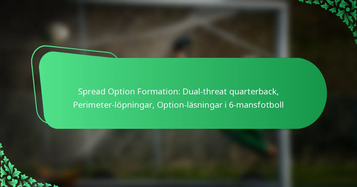 Spridningsalternativformationen i 6-mannafotboll är en strategisk offensiv metod som utnyttjar en dual-threat quarterback för att maximera offensiv mångsidighet. Denna formation betonar löpningar längs kanterna och alternativläsningar, vilket möjliggör dynamiska spelmöjligheter på planen.
