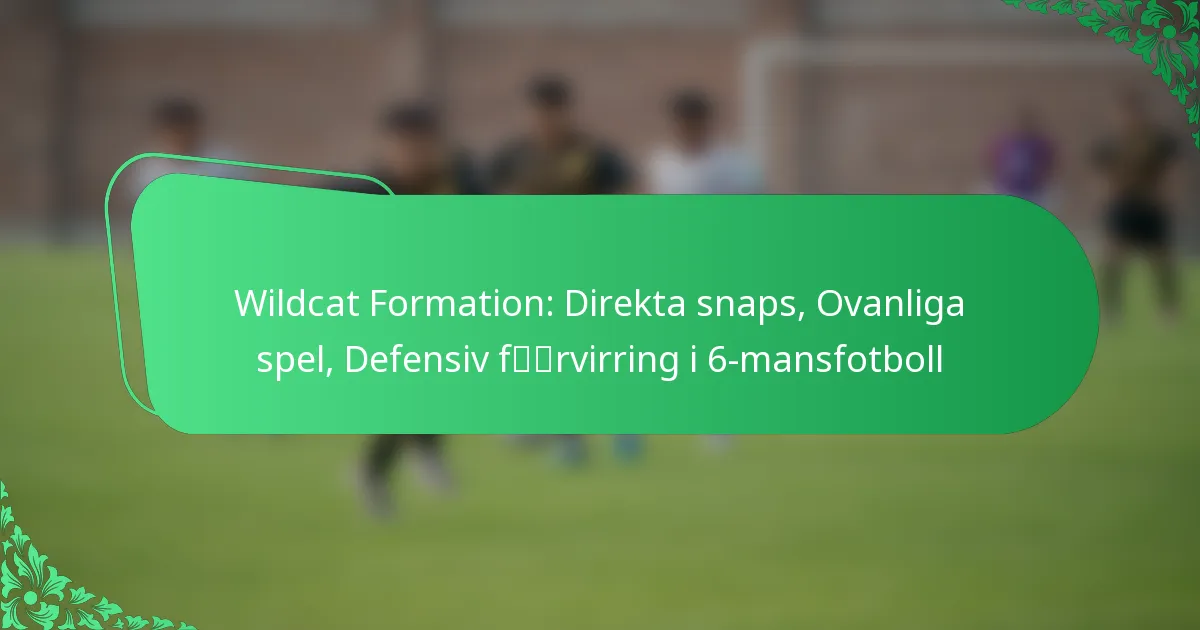 Wildcat-formationen i 6-mannafotboll är en offensiv strategi som använder direkta snaps till en running back eller en annan skicklig spelare istället för den traditionella quarterbacken. Denna okonventionella metod syftar till att skapa förvirring bland försvararna och utnyttja mismatchar på planen.